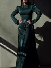 Robe Satin Strass Manches Longues – Maxi Élégante Soirée