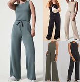 Combinaison Femme Couleur Unie Sans Manches – Jumpsuit Sleeveless Tops Tie Elastic Pants