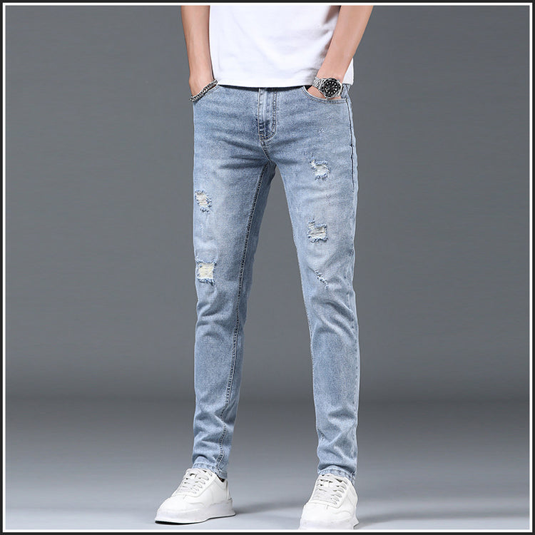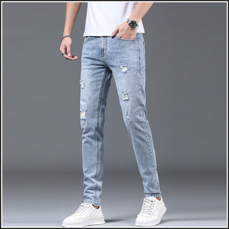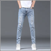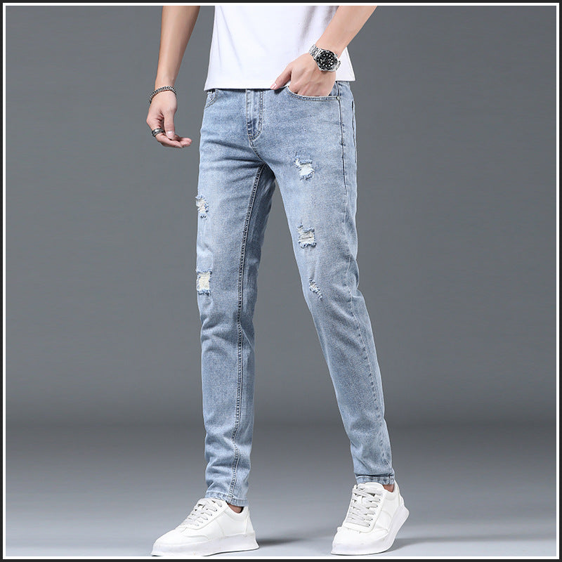 Pantalon Homme Slim Fit Déchiré Léger – Jean Casual Coton Automne