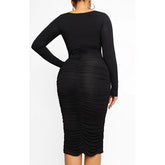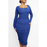 Robe Moulante Col Carré à Plis - Silhouette Sculptée