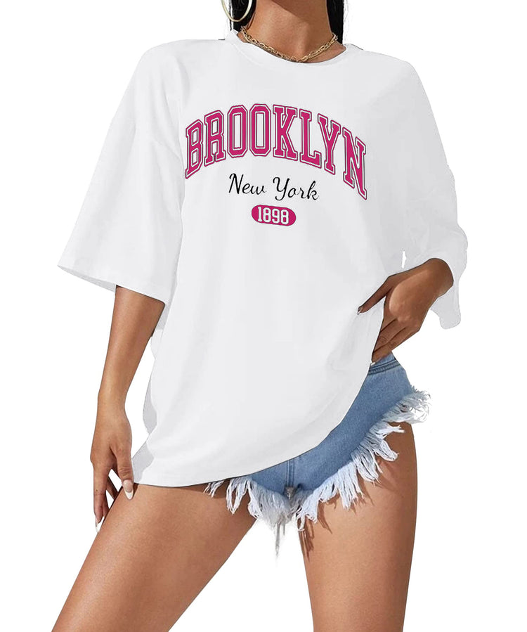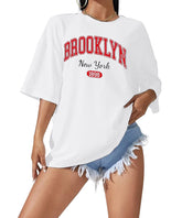 T-shirt Femme Imprimé Épaules Tombantes – Style Décontracté Été Casual